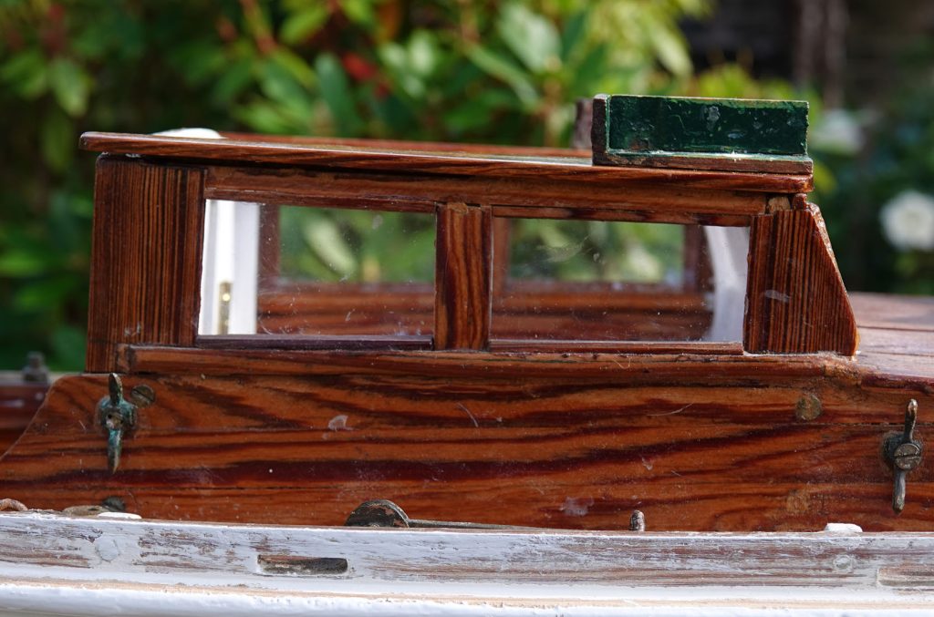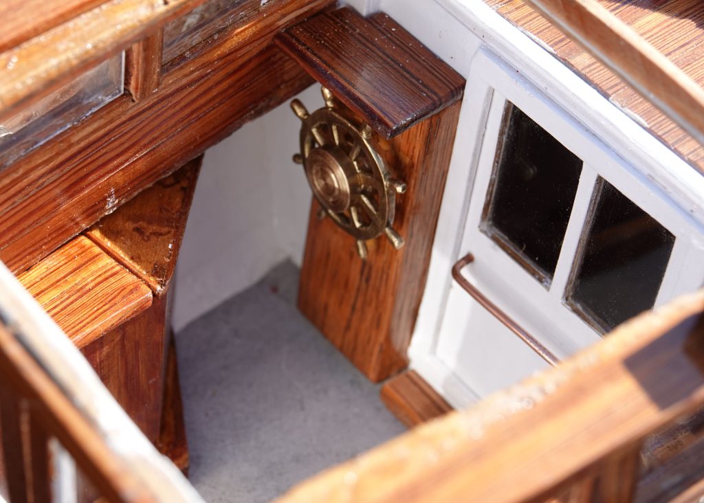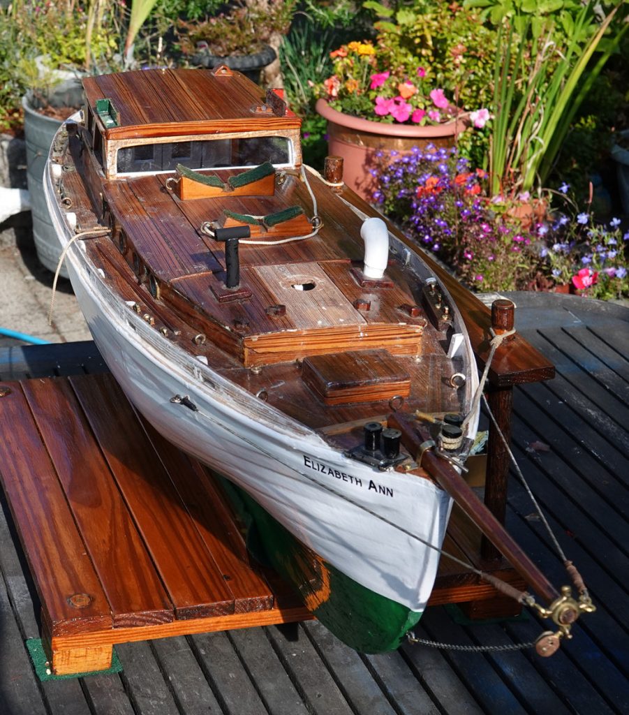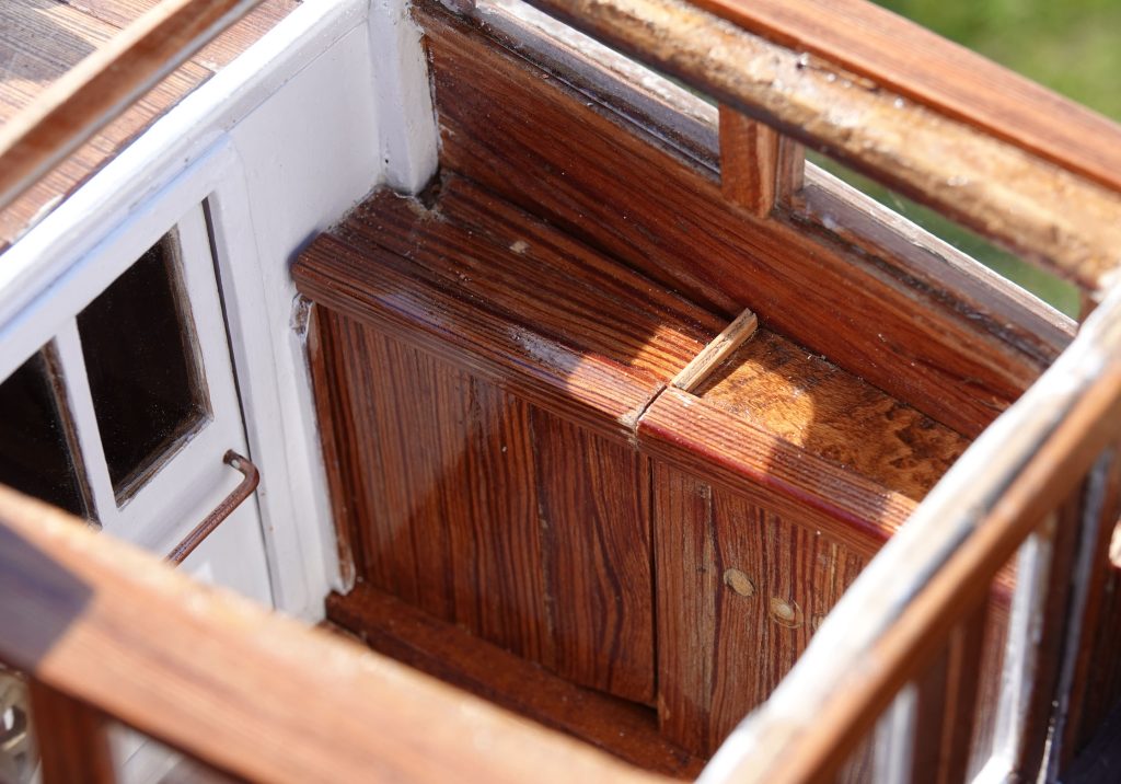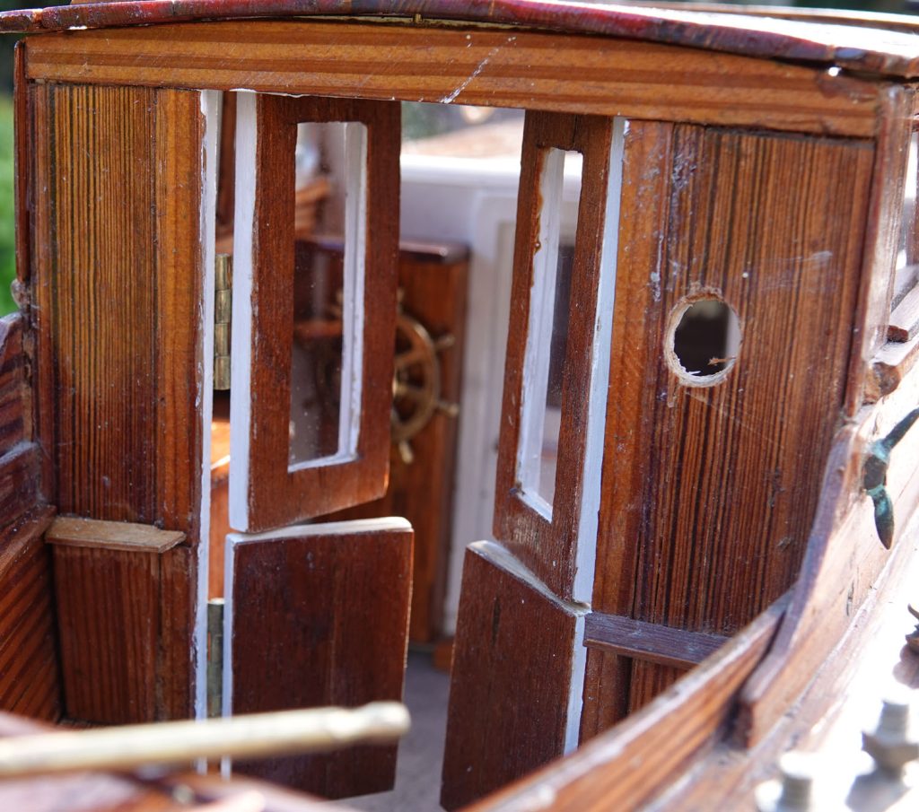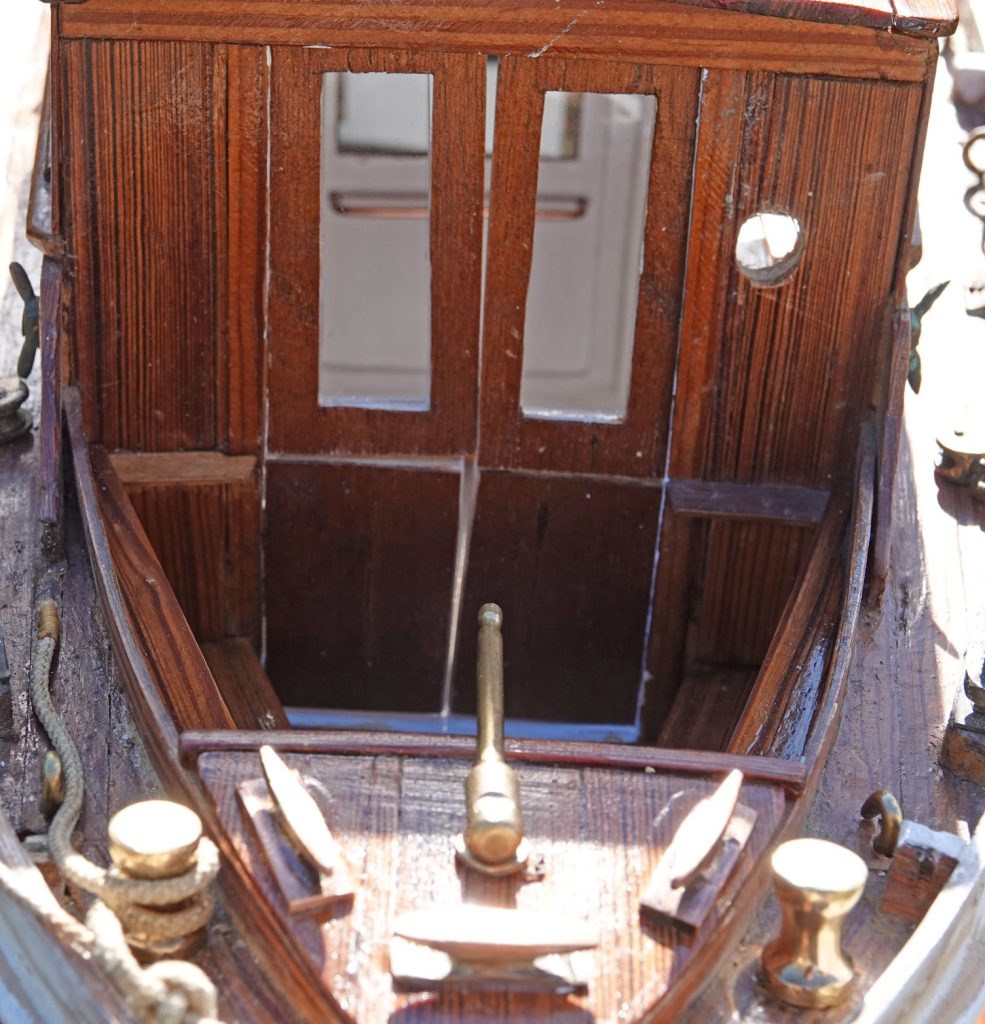 The model had a good level of interior detail which included lights. When newly finished it would have looked impressive. The majority of the fittings on the deck & rigging had been scratch built by the builder. To some extent the interior was spoilt by the motor and the necessity for (in those days) a bulky battery placed in the main cabin.
