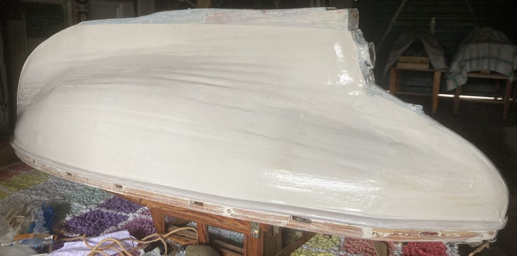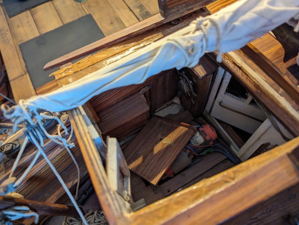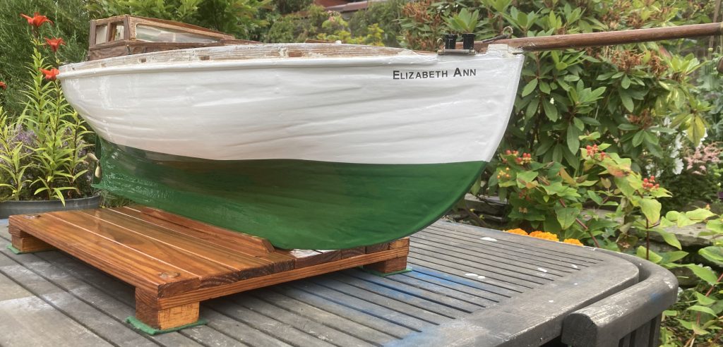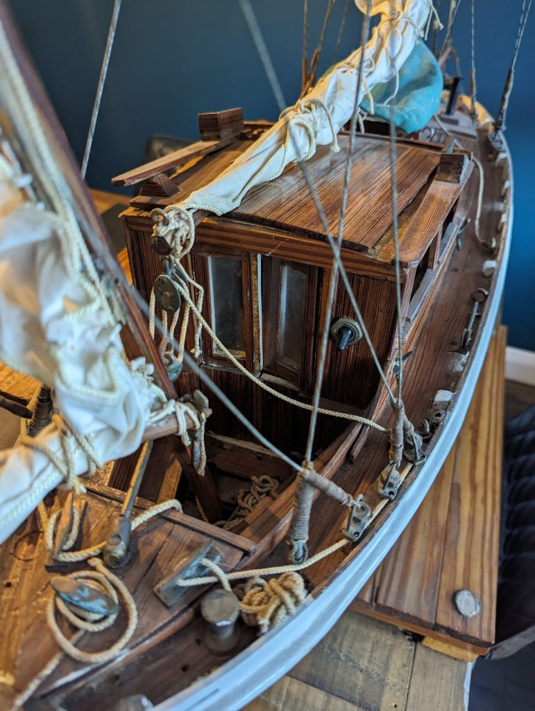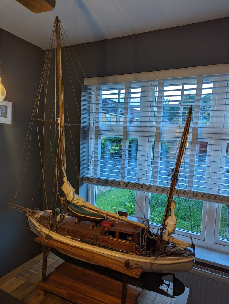 The restoration was broken down into four parts; Record & dismantle (the latter was easy as the glue had perished). Restore the hull externally (which proved to be a bigger challenge!). Reconstruct the interior. Renovate the standing & running rigging. The sails are in excellent condition apart from some discolouration and extremely well made. It was decided to leave these.