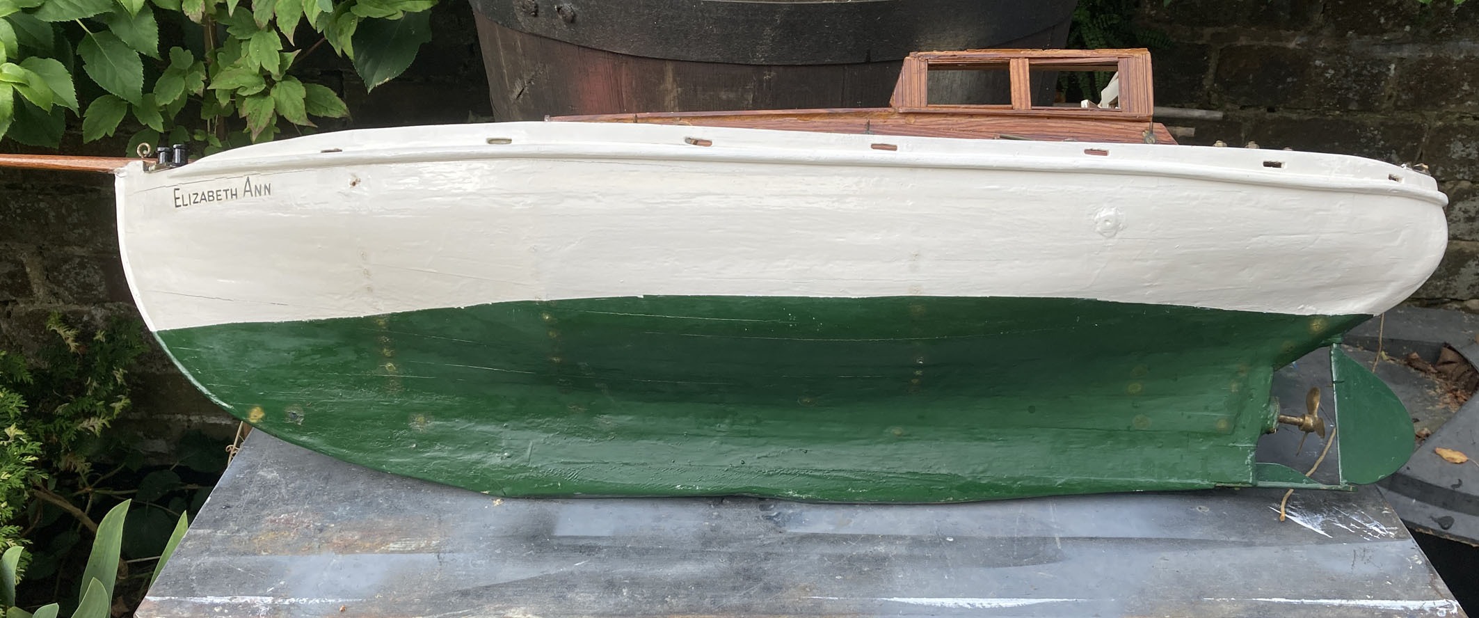 The model had a good level of interior detail which included lights. When newly finished it would have looked impressive. The majority of the fittings on the deck & rigging had been scratch built by the builder. To some extent the interior was spoilt by the motor and the necessity for (in those days) a bulky battery placed in the main cabin.